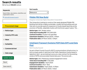 - Suitability, where you can include tender opportunities which are suitable for SMEs and VCSEs (such as grant or research funding).